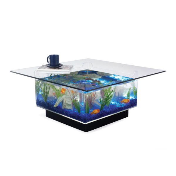 Elevate your living or office space with the Midwest Tropical 675 Square Aquarium Coffee Table—a perfect blend of elegance and functionality. This unique coffee table doubles as a mesmerizing 25-gallon aquarium, allowing you to experience the beauty of aquatic life from every angle. Crafted from durable cell-cast acrylic, it offers unmatched clarity and strength, over ten times stronger than glass. Watch as the glowing blue gravel and built-in lighting create a soothing ambiance, making this aquarium coffee table a true conversation starter. Whether you’re searching for a modern coffee table or aquarium furniture, this stylish centerpiece is designed to impress while providing a relaxing environment for your aquatic life. Add this masterpiece to your home or office today!